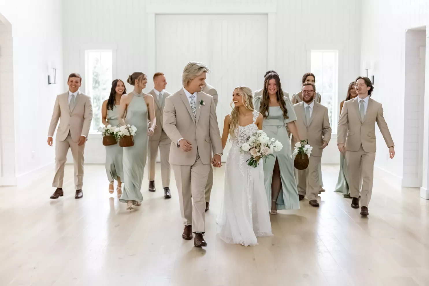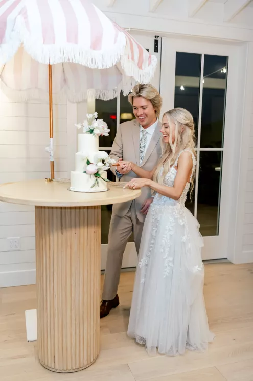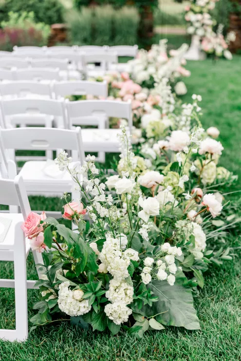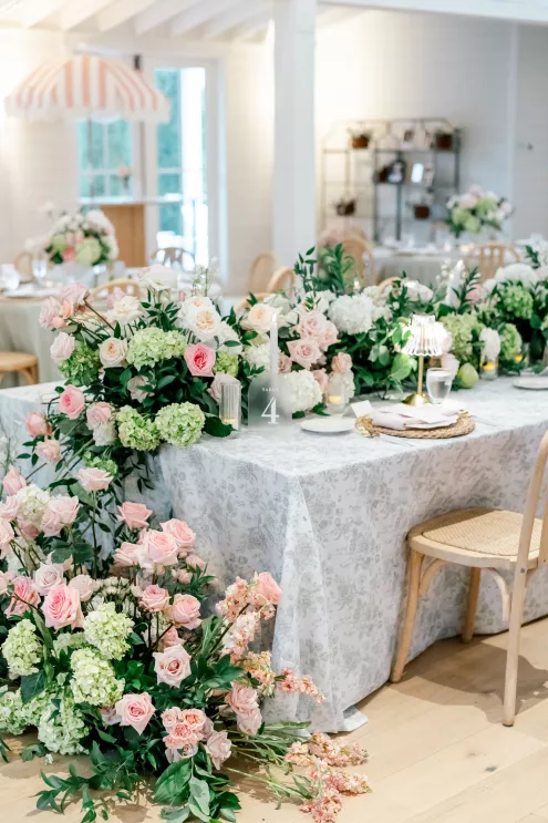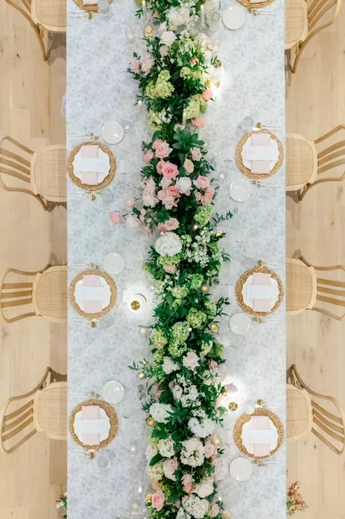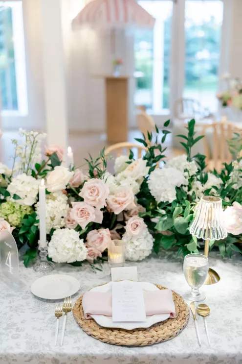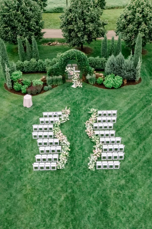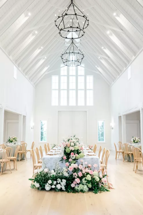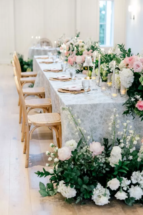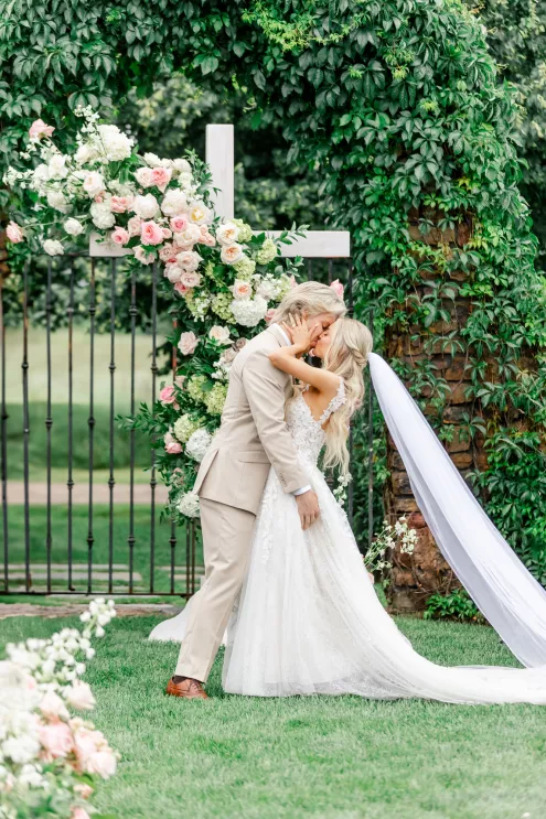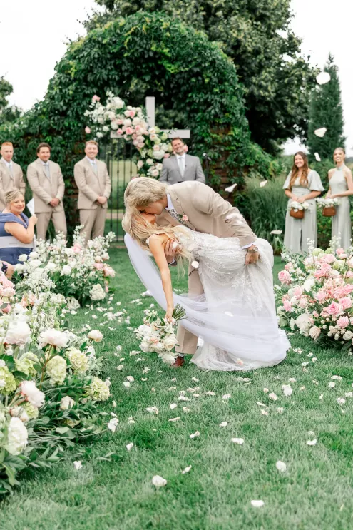 A love story that bridged the distance between Minnesota and Florida, Kate and Dylan caught flights and feelings for each other during their courtship. It began with a simple follow on Instagram and eventually bloomed into an oceanside proposal at the Naples Pier, the very spot where they had spent their early days watching sunsets together. For their wedding day, the pair sought to fuse Floridian aesthetics with the Midwestern beauty of Redeemed Farm while incorporating heartfelt touches. To honor Kate’s late father, a portrait of him was tucked inside her bouquet, allowing him to symbolically walk her down the aisle. Thankfully, the stormy summer skies parted just in time for their verdant garden party-inspired ceremony. An abundance of blooms lined the serpentine aisle as the bridal party carried playful floral wicker baskets in lieu of bouquets. Rose petals drifted through the air as Dylan and Kate sealed their marriage with a kiss at the end of the aisle. The indoor reception was just as lush as the ceremony, with the bright white interior offering a perfect backdrop for the roses, hydrangeas and foliage to pop. In another tribute to Kate’s late father, the couple’s first dance was scored by the song he had sung to her mother on their wedding day exactly 30 years earlier, “Love and Learn.” In a seamless blend of their worlds and families, Kate and Dylan’s wedding day became an elegant and heartwarming story they look forward to sharing for years to come.