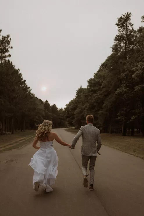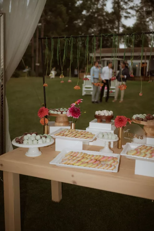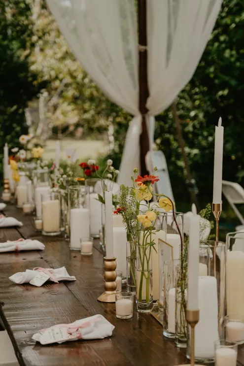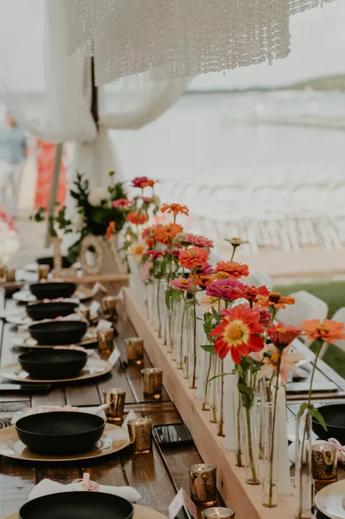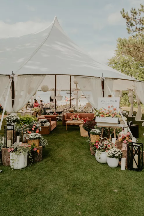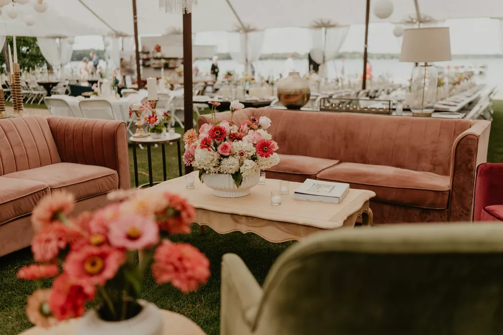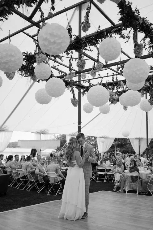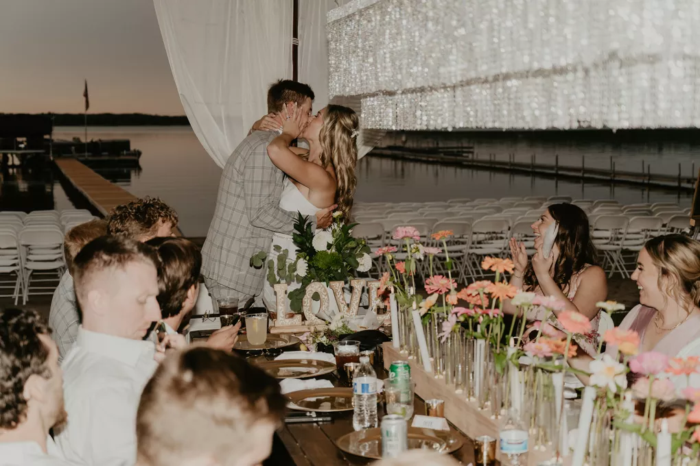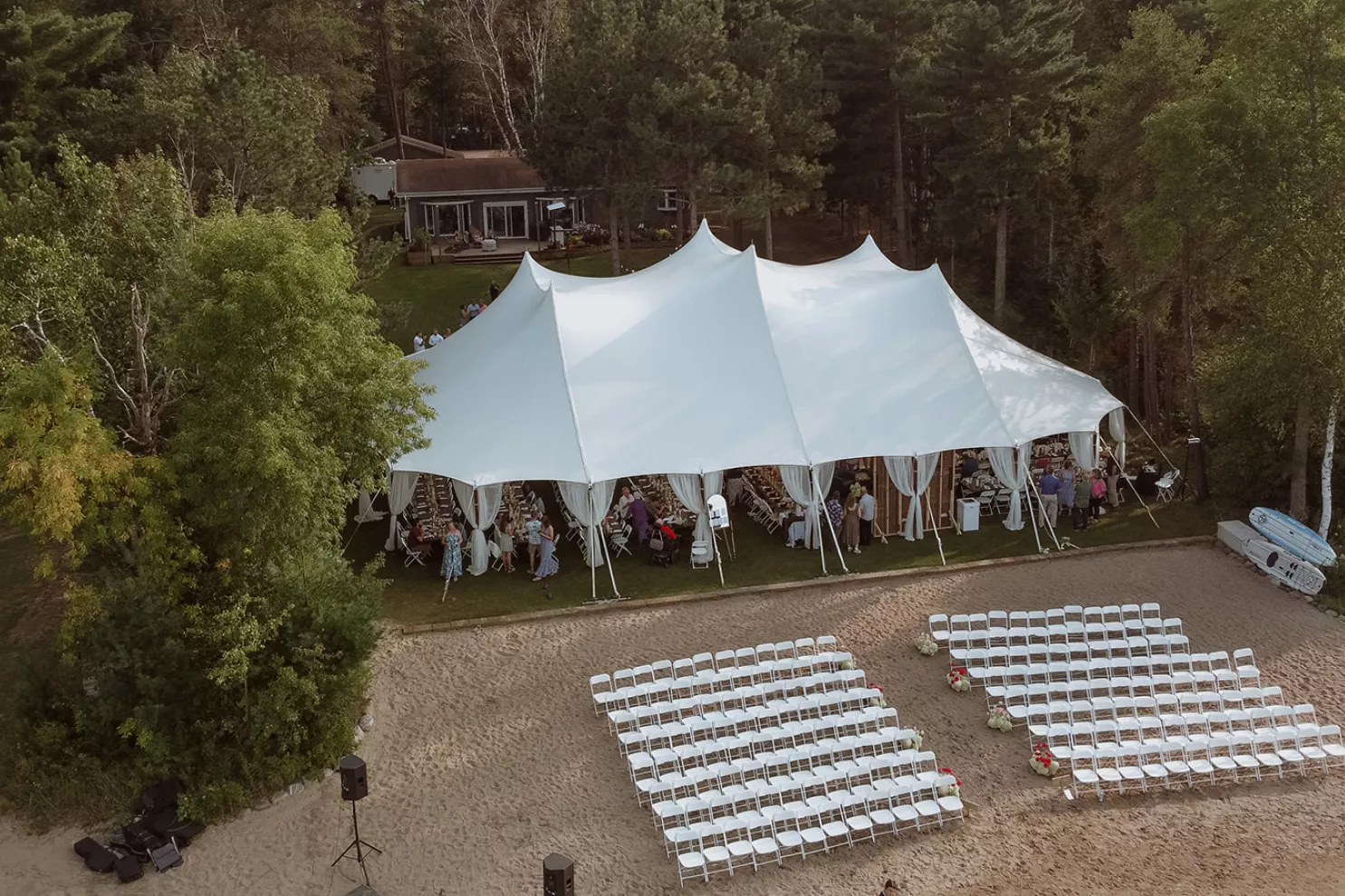 When Lauren Herker and Michael Gottwalt met during an outing with mutual friends—the result of some lighthearted matchmaking—they never knew what was in store for them. After several months and uncoincidentally ending up at a cabin weekend with the same group of friends, Lauren agreed when Michael asked her out; from there, the couple’s romance quickly bloomed. While planning their wedding, they sought a fun, stress-free day that cherished all their loved ones. Hosting the wedding at the family’s private cabin on Horseshoe Lake was an easy decision—the couple spends most of their time and got engaged at the lake, making it a meaningful and incredibly picturesque place to get married. The natural setting created a unique ceremony in which the couple said their vows on the soft sandy beach, covered in sunlight. Every detail of the day prioritized what felt meaningful and natural. The lakeside reception unfolded beneath an enormous sailcloth tent for 225 guests. Lauren’s mom served as the wedding’s main planner and florist who executed the couple’s creative vision and even grew flowers in her basement from seeds just for the special day. Family moments were woven throughout the day, like when Lauren’s dad surprised everyone by learning how to play guitar just to sing his hilarious 15-minute toast. As the night went on, guests loved the exciting dueling pianos performance, and blankets were passed out so guests could stay comfortable in the cozy couches throughout the tent. Lauren and Michael set out to create a wedding that was laid back, joyful and full of love, resulting in an unforgettable day they will never forget.