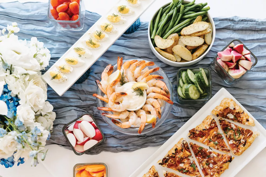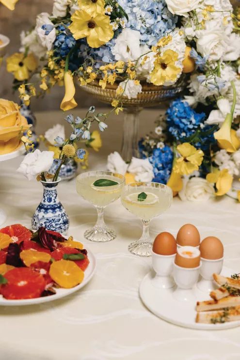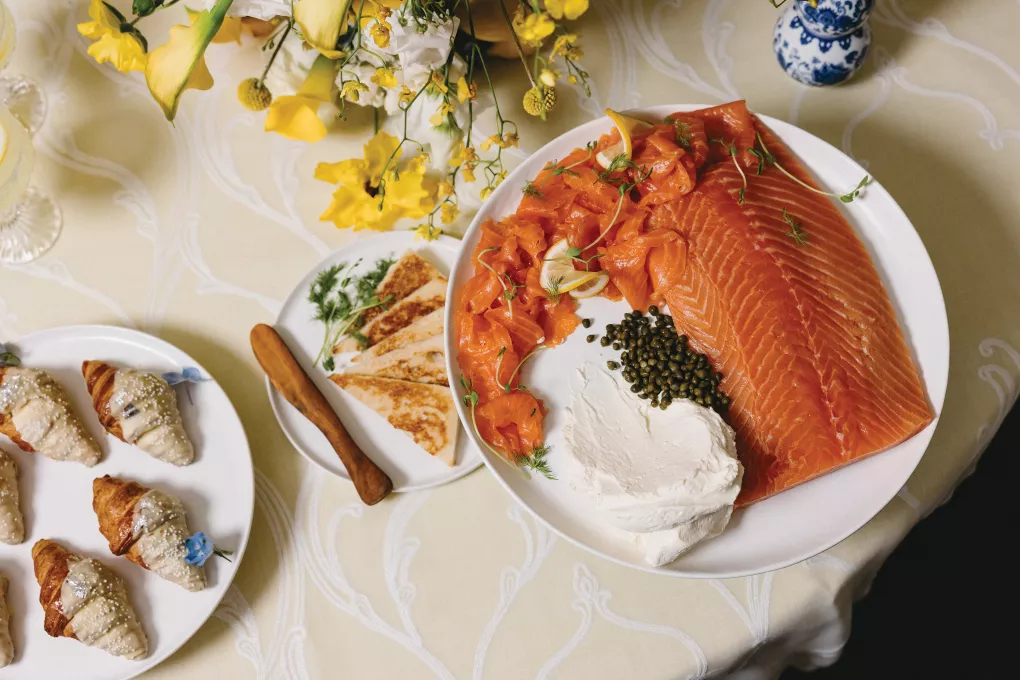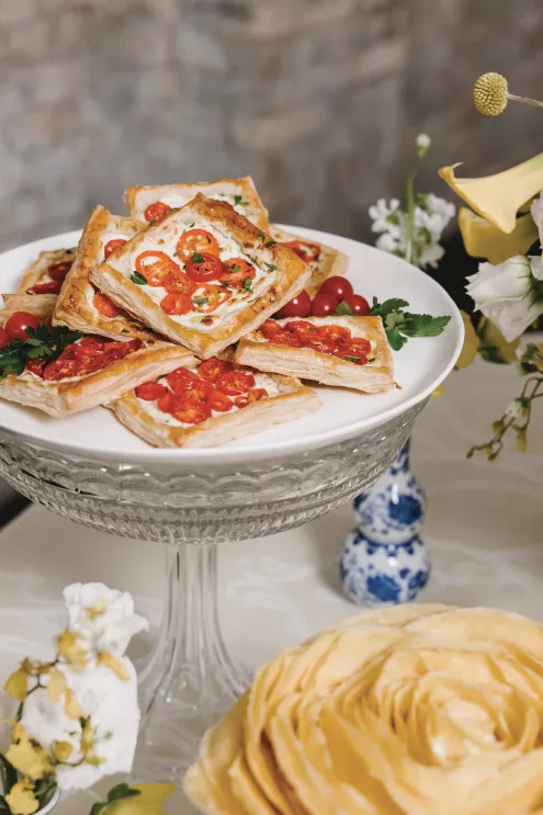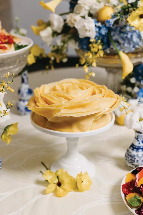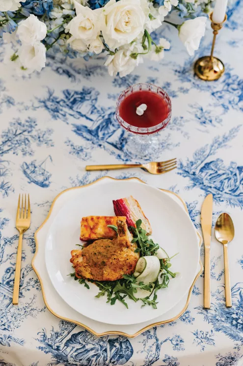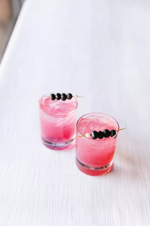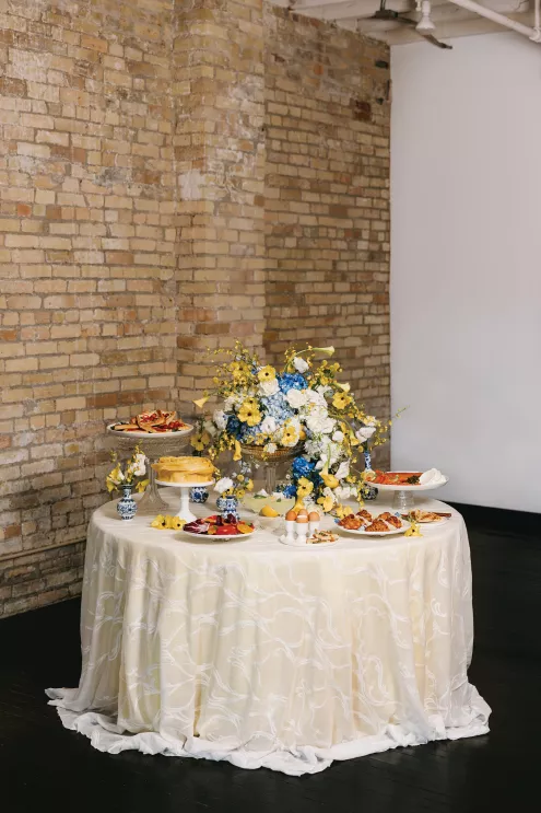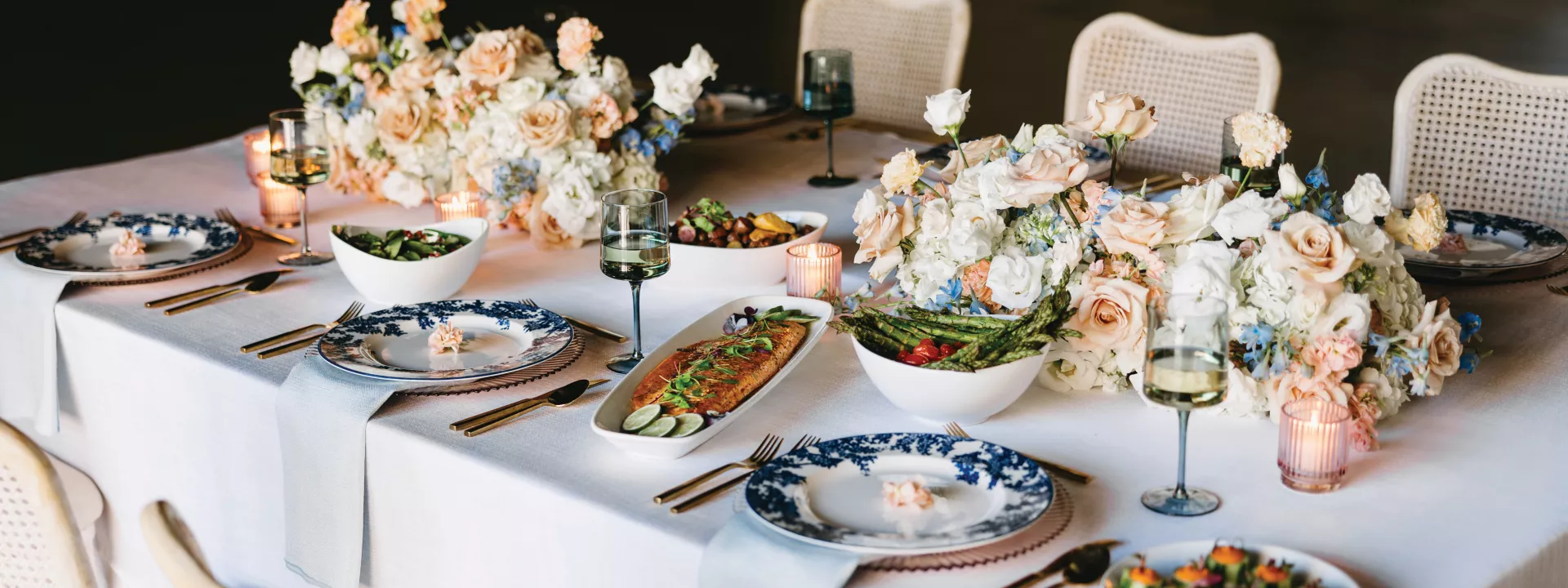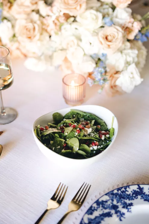 The welcome dinner is the first taste guests experience when embarking on a weekend of wedding festivities. This event offers the couple an opportunity to showcase their home state and city to those traveling from afar, explore unique dishes and allow unfamiliar guests to connect. For this reason, a family-style meal is paramount. Inspired by the iconic flavors of Minnesota, Crave Catering curated an intentional family-style meal set against an inviting tablescape designed by Kasey Schwartz of Ink & Ivy Designs. The sweet aroma of lush florals mingled with the savory scent of honey whiskey glazed salmon as guests engaged in warm conversation. Fresh fruit tarts and blueberry gimlets, glowing under rose-colored tea lights, served as the perfect nightcap to an intimate evening of connection.