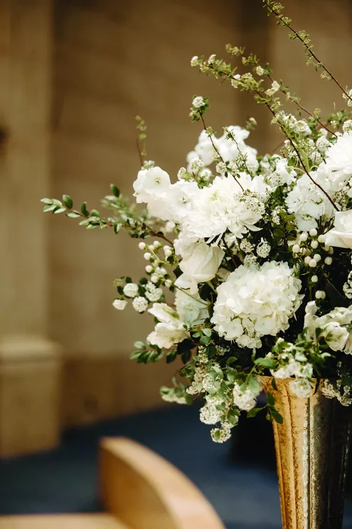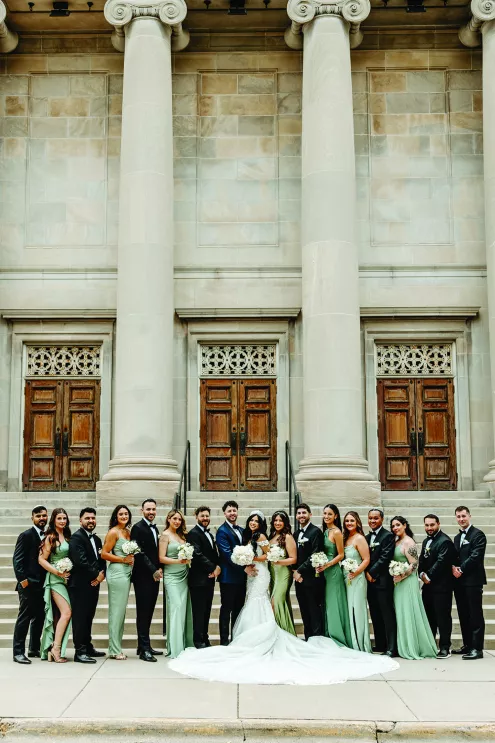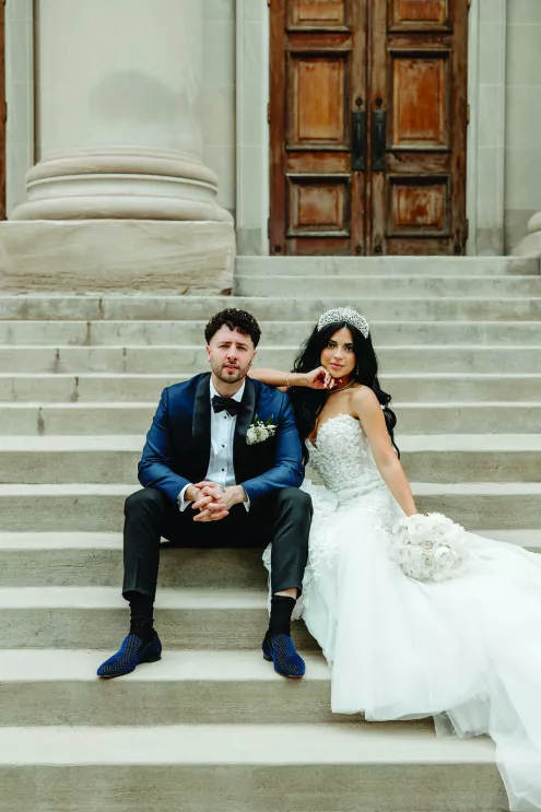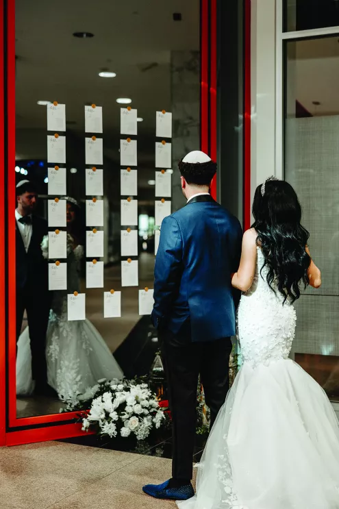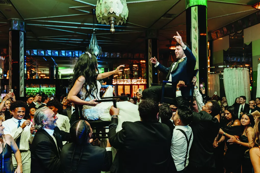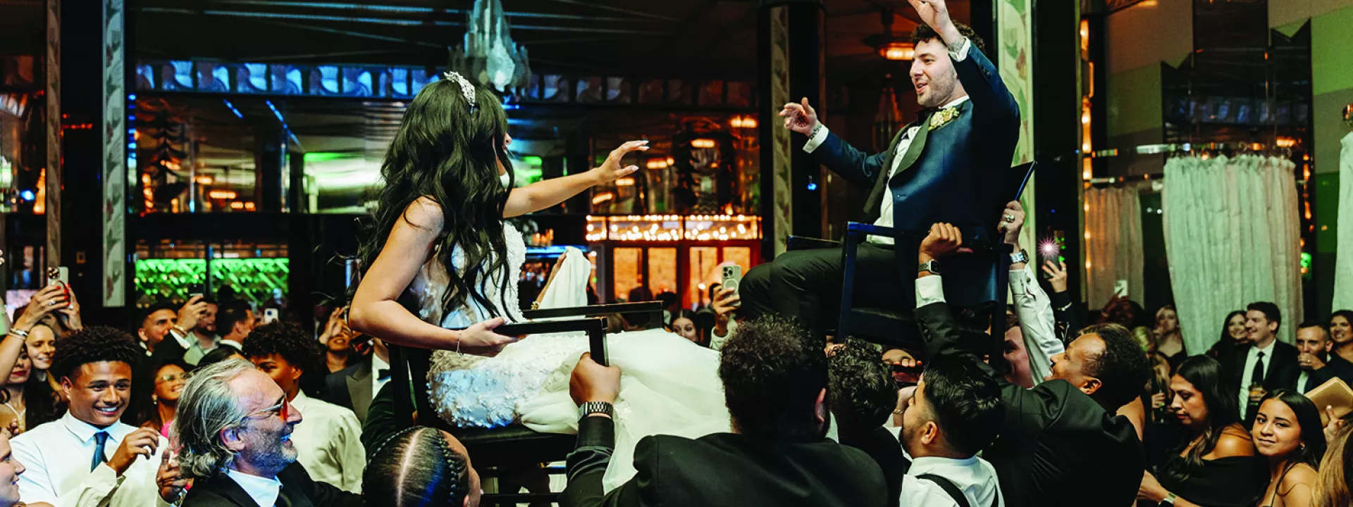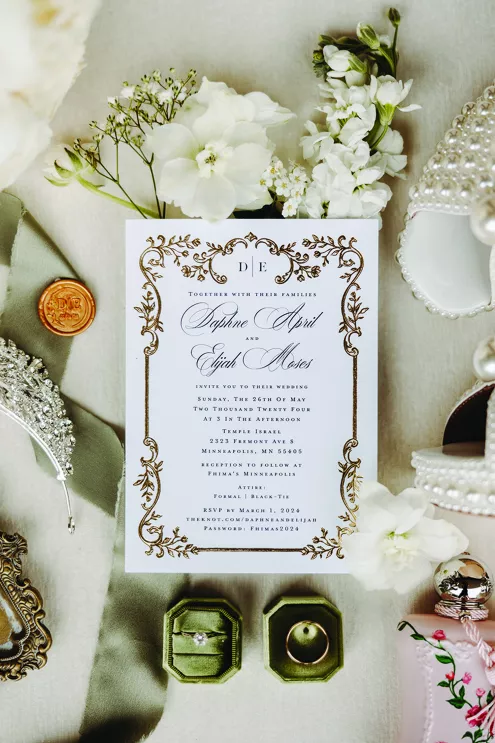 For couples currently planning a wedding in Minnesota, one of the most valuable takeaways came early in the conversation: venue selection doesn't have to follow tradition to be successful. The couple hosted their ceremony at Temple Israel, followed by a full restaurant buyout reception at their family's restaurant, Fhima's Minneapolis. The Art Deco space — with soaring ceilings, chandeliers and historic character — allowed them to host a large guest list of roughly 255 people while creating an immersive, design-forward experience. As a restaurant family, the choice felt natural and meaningful, reinforcing how personal history can guide venue decisions just as much as aesthetics or logistics.